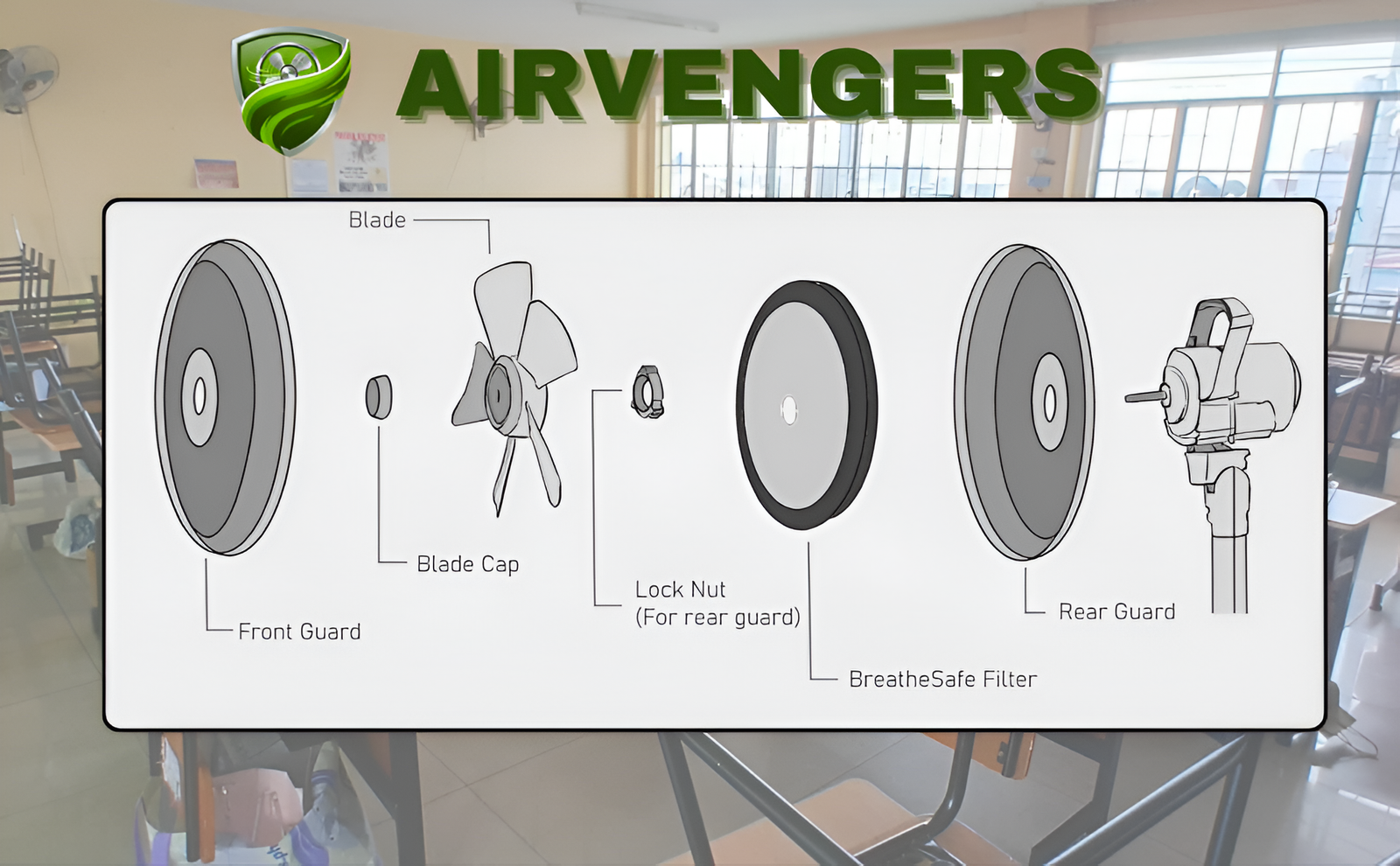 That’s why The AirVengers created BreatheSafe! This innovative, low-cost filtration attachment for ordinary electric fans transforms them into simple yet effective air-cleaning devices. By filtering out dust, allergens, and pollutants before they spread through the room, BreatheSafe helps maintain a cleaner and healthier learning space.